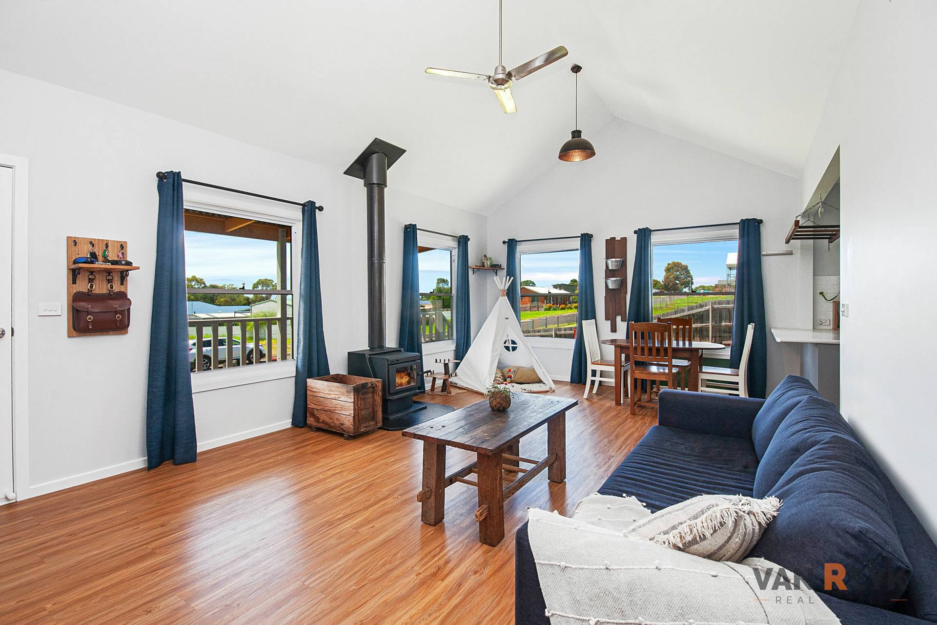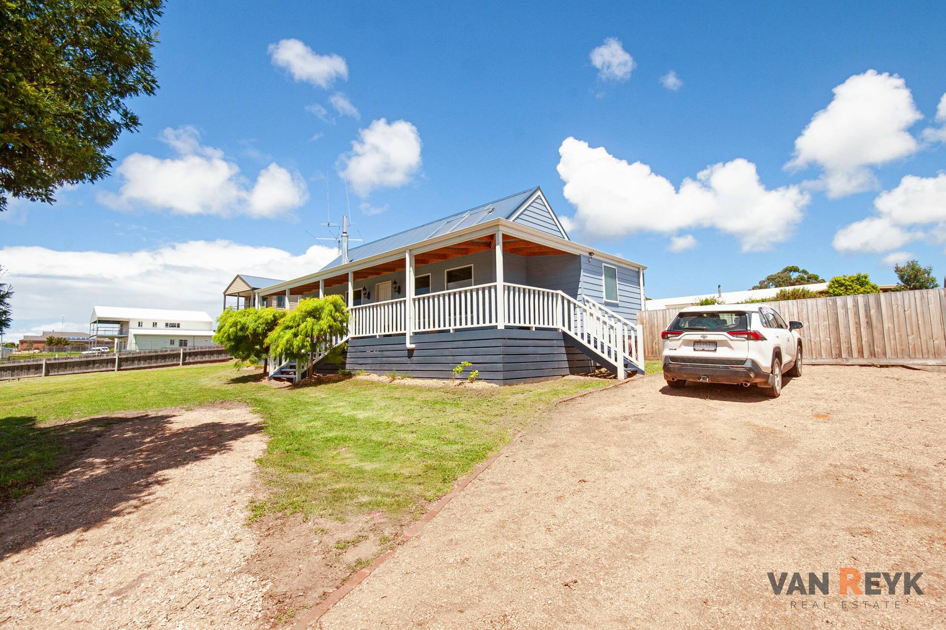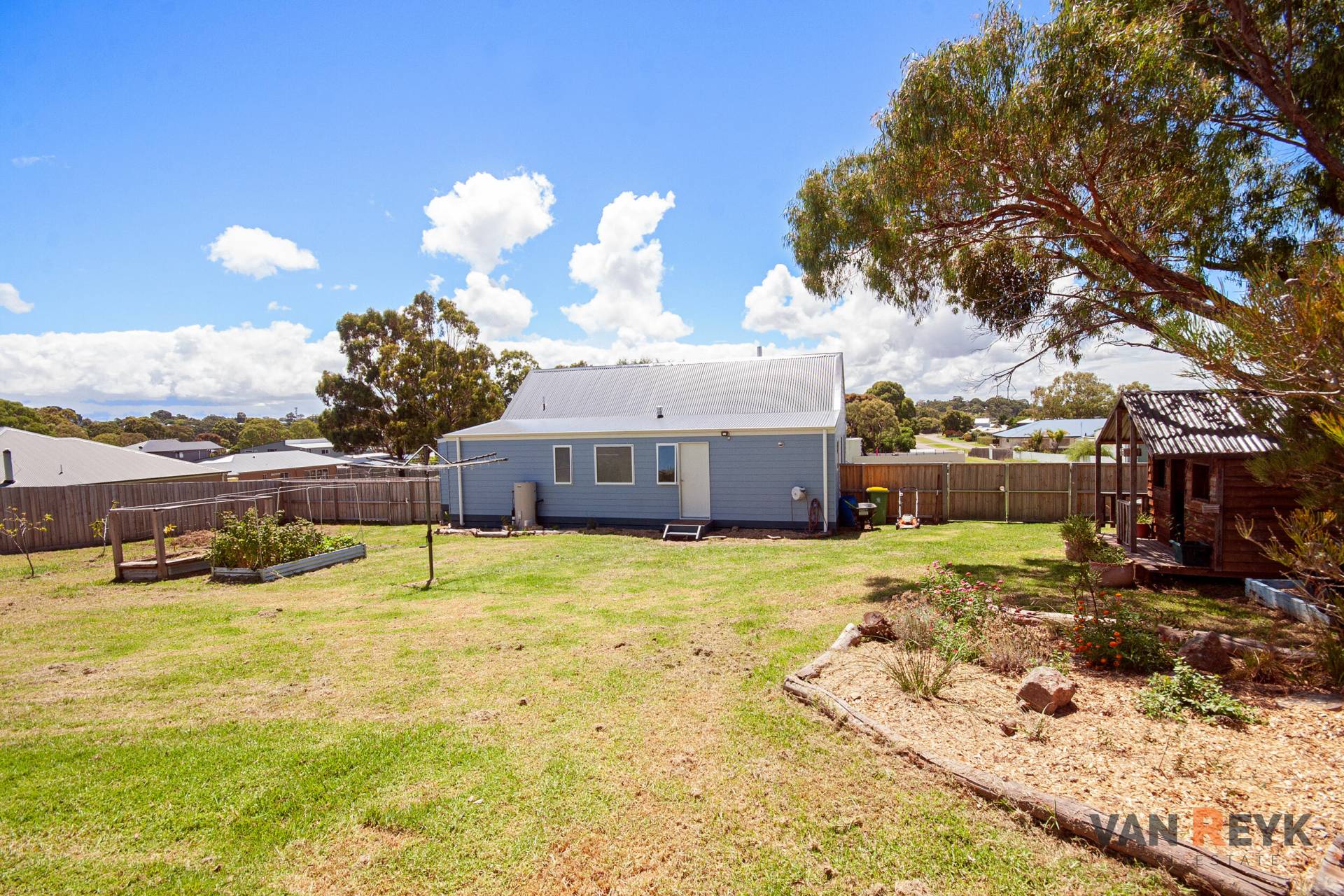 Situated just minutes from the sheltered waters of Dawson's Cove on the Gippsland Lakes,  this charming home is just 2 years old. It is set on a roomy 1,160m2 block so there is plenty of space for vehicles, boats and a caravan while still having a great play area for the kids, a large vegetable garden and a chook run. The elevated home has a north east facing verandah perfect for relaxing in a chair, sipping a drink while cooling down with a gentle sea breeze during the summer or a morning coffee warming up with the winter sun. The main living area has a vaulted ceiling that captures more natural light and together with a solid fuel heater provides character to the home. The kitchen includes a corner pantry and dishwasher while there is a master bedroom large enough for a study desk with a walk in robe and ensuite. The main bathroom has a bath & shower and there is a separate toilet as well. If you are looking for a relaxed lifestyle property, just minutes from the lake system, beach and boat ramp call Dennis van Reyk at VAN REYK REAL ESTATE BAIRNSDALE.