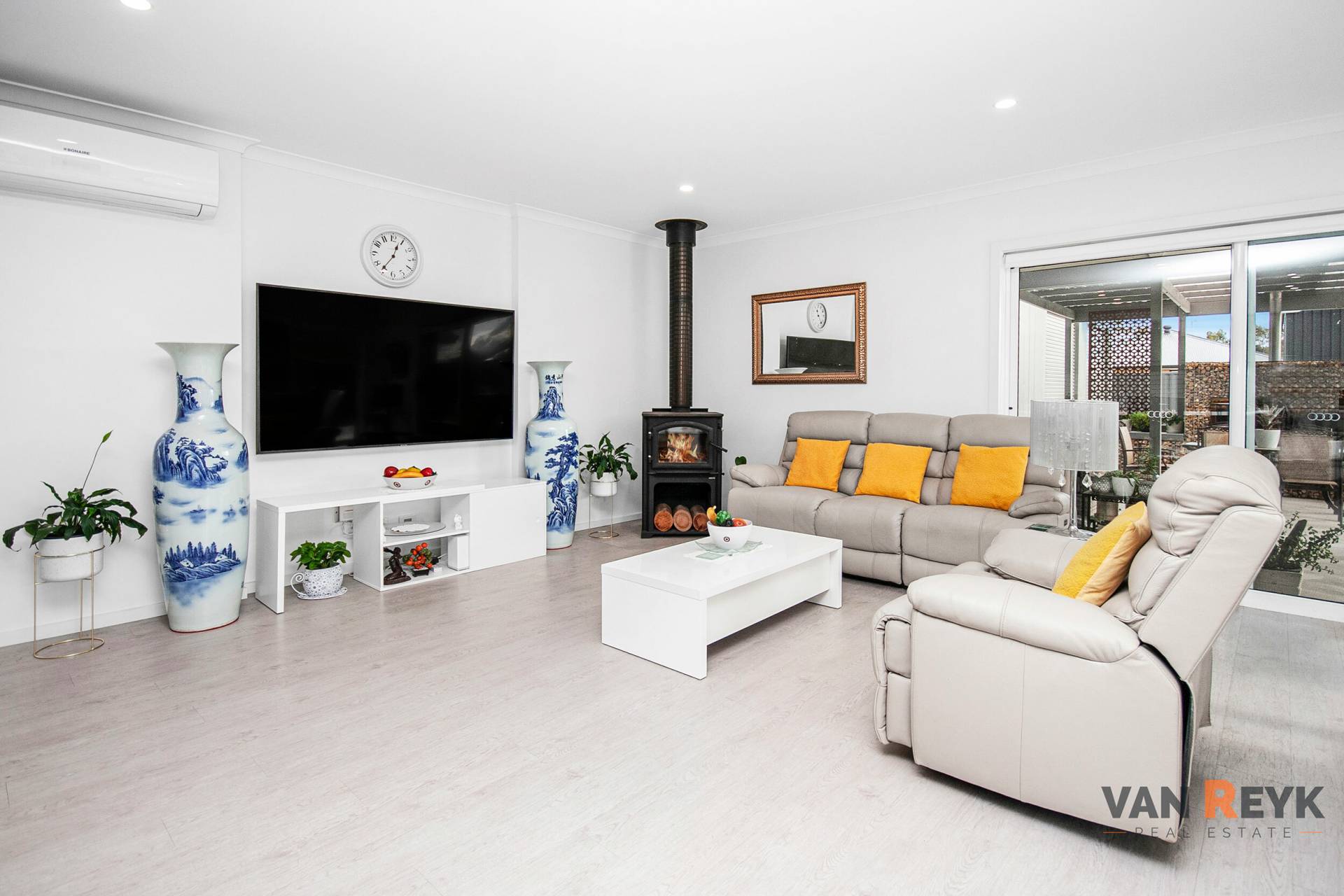 • Split system A/C plus wood heater