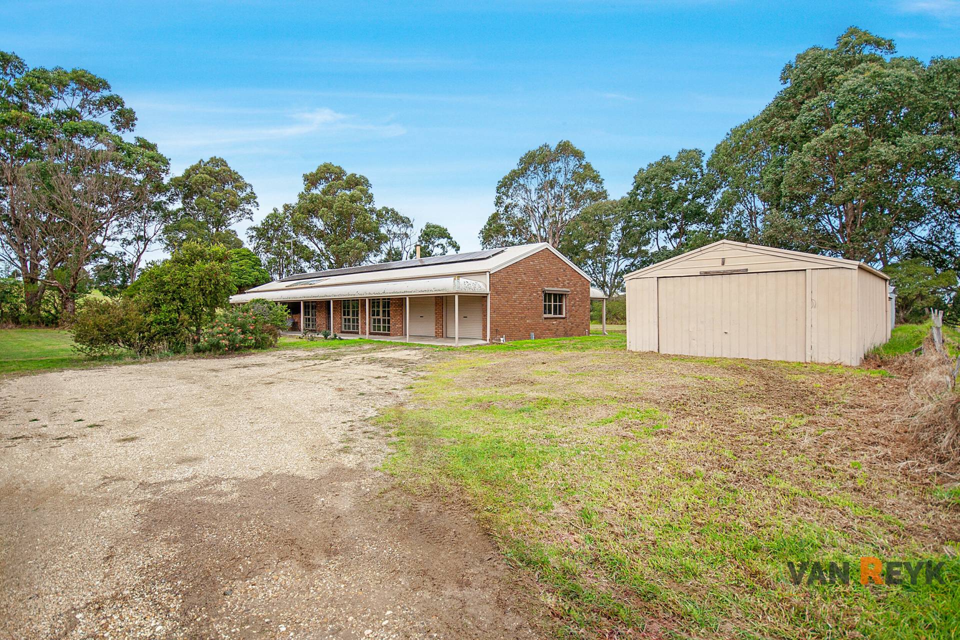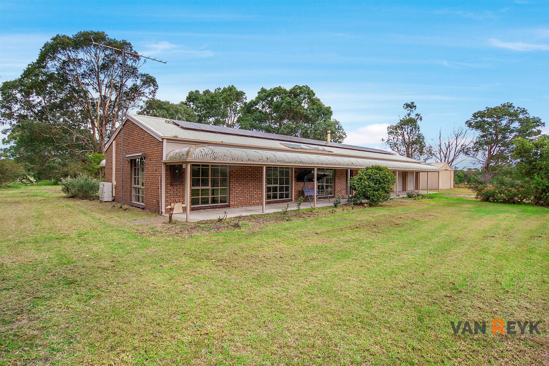 Country living at its best can be experienced on this 31.5 acre hobby farm at Ellaswood, a 12 minute drive north of Bairnsdale. The land has been divided into 7 paddocks with a central laneway to move stock more efficiently and manage pasture. Improvements include a ranch style three bedroom brick veneer home with steel frame and renovated kitchen and bathrooms, cosy wood fire and split system reverse cycle air conditioning to living area and bedrooms. Mains power is connected to the property while your energy bills will be reduced through a solar system with battery and generator connection in the case of mains power outage. The hot water system has solar and a water jacket in wood heater to further keep your energy costs down. There is a double garage under roofline that can be modified for either an extra living area or another large bedroom.   Shedding includes a steel garage with toilet and there is also a machinery/hay shed in the paddock. Water is available to property from 3 large rain water tanks and there are troughs to paddocks. For inspection and further details contact Dennis van Reyk on 0409 524 780 at VAN REYK REAL ESTATE BAIRNSDALE.